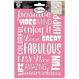 Schablonen im A5-Format von 0,6 Millimeter dick, um in Erleichterung zu schaffen. Diese 3D-Schablonen sind klebend und einfach zu bedienen und wiederzuverwenden. Mit Izink Diamond zu verbinden, um einen glitzernden Rendering oder Izink perlig für ein perlige Rendering zu verbinden. Das Produkt ermöglicht es, auch die abgerundeten Klammern zu dekorieren, da die Schablone flexibel und einfach zu positionieren ist.